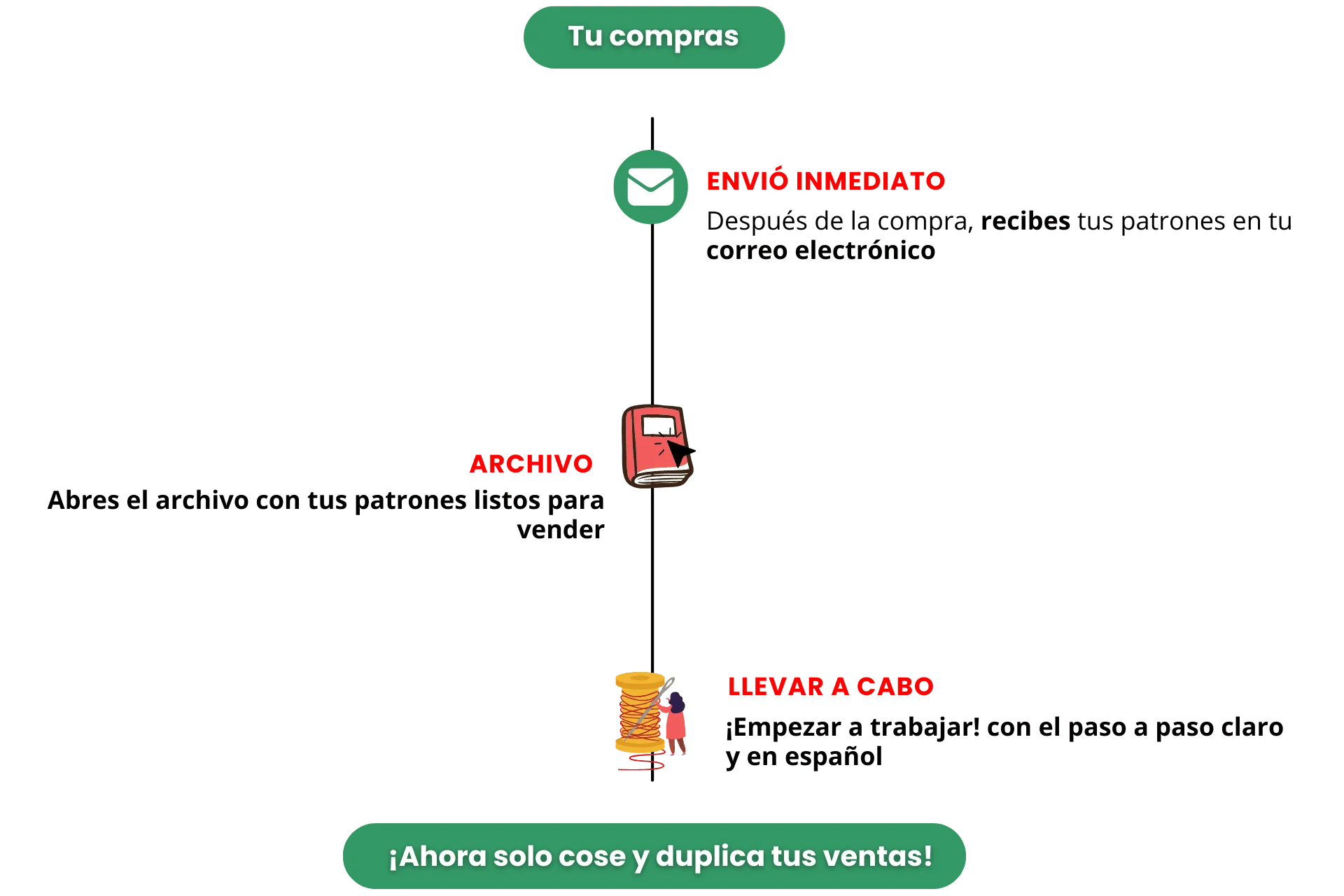 “Olvídate de perder tiempo con patrones mediocres: accede a diseños únicos, claros y en español para que multipliques tus ventas y destaques frente a tu competencia en esta temporada.”